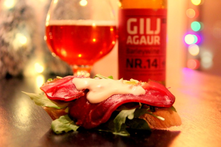 BJÓR MEÐ: Bjórinn með þarf að vera þróttmikill til að ráða við þennan rétt. barley wine er alveg kjörinn stíll í verkefnið. Hér völdum við Giljagaur frá Borg sem er einn af okkar uppáhalds jólabjórum. Geggjað kombo. Það eru því miður ekki margir barley wine bjórar í vínbúðinni en þó eru þeir til, spyrjið bara staffið í búðinni.