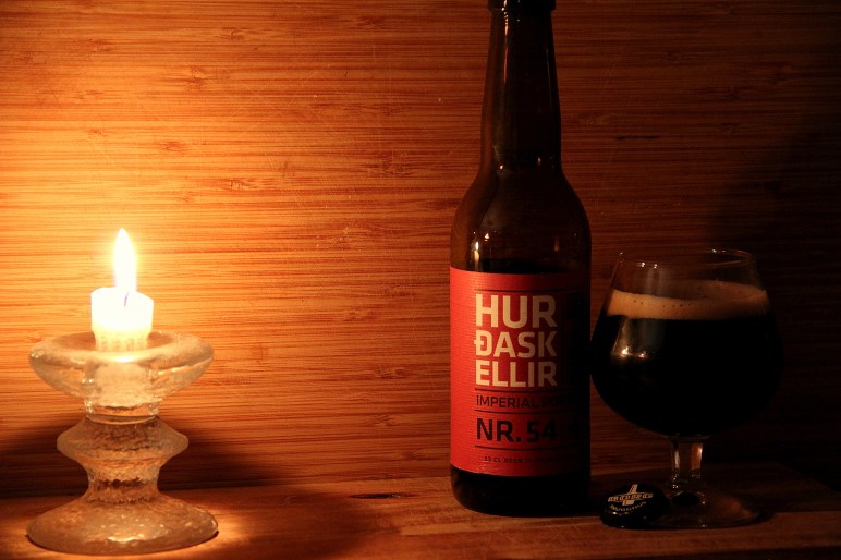 Hurðaskellir er svo nýjasti jólabjórinn frá Borg og margir geta reiknað út að það eru 7 eftir ókomnir frá brugghúsinu þannig að við eigum amk 7 spennandi ár framundan. Hurðaskellir er svakalegur enda mikill jólasveinn sem kemur með látum. Það er óhætt að segja að Hurðaskellir komi með látum. Við erum að tala um 11.5% Imperial Porter sem er þroskaður á rúgvískítunnum. Munurinn á porter og stout er svo efni í heilmiklar pælingar, imperial porter stendur á flöskunni og þá er þetta imperial porter frekar en stout.
