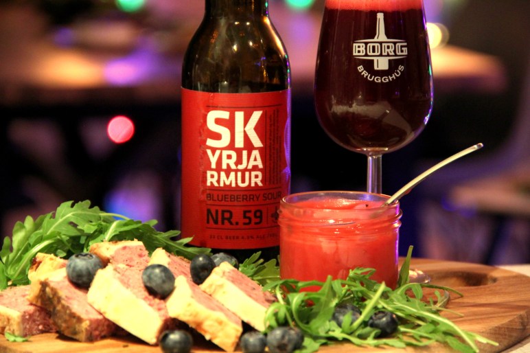 Skyrjarmur er nýjasti jólabjórinn frá Borg Brugghús en um er að ræða stórkostlegan bláberja súrbjór bruggaður með skyri og óvenjulega mikið af bláberjum. Bjórinn er gríðarlega drekkanlegur, mildur og ljúfur með ögn súran blæ sem þó er óverulegur því bláberjasætan kemur vel á móti og skapar frábært jafnvægi. Bláberin eru allsráðandi í þessum bjór og því fannst okkur rétt að prófa að para hann við einhverja villibráðina sem við erum vön að gæða okkur á yfir jólin.
