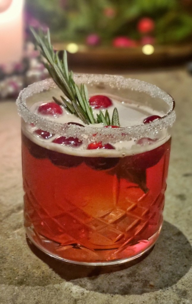 Ég veit ekki hvað skal kalla þennan drykk en þetta er jóla kokteill með krydduðu rommi eða bourbon og freyðivíni.