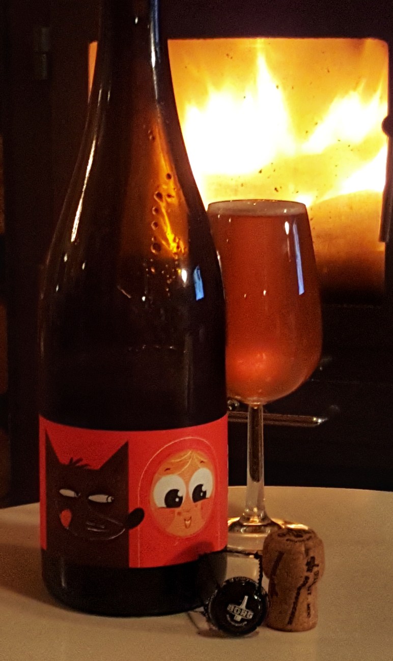 Í þessari flösku er dásamlega skemmtilegur bjór sem flokka mætti sem red wild IPA því hér hafa menn tekið höndum saman, þ.e.a.s Borg Brugghús og hið sænska Brekeriet sem frægt er fyrir súrbjór og wild aleRauðhetta er red sour frá Brekeriet sem ku vera helvíti næs einn og sér og Úlfinn þekkjum við landsmenn öll ekki sett enda stórfínn IPA.  Borg og Brekeriet ákváðu að sulla þessu saman þannig að bruggaður var Úlfur og svo hleypt inn á gertankinn villigerið sem Brekeriet notar við gerjun á Rauðhettu og látið gerjast í tvö ár takk fyrir.  Þetta er skemmtileg tilraun því menn vissu jú ekkert hvernig þetta myndi fara, myndi villigerið yfirtaka öll völd og skyggja á Úlfinn eða öfugt.  Borg talar um á síðu sinni baráttu Rauðhettu og Úlfsins, hver gleypir hvern?