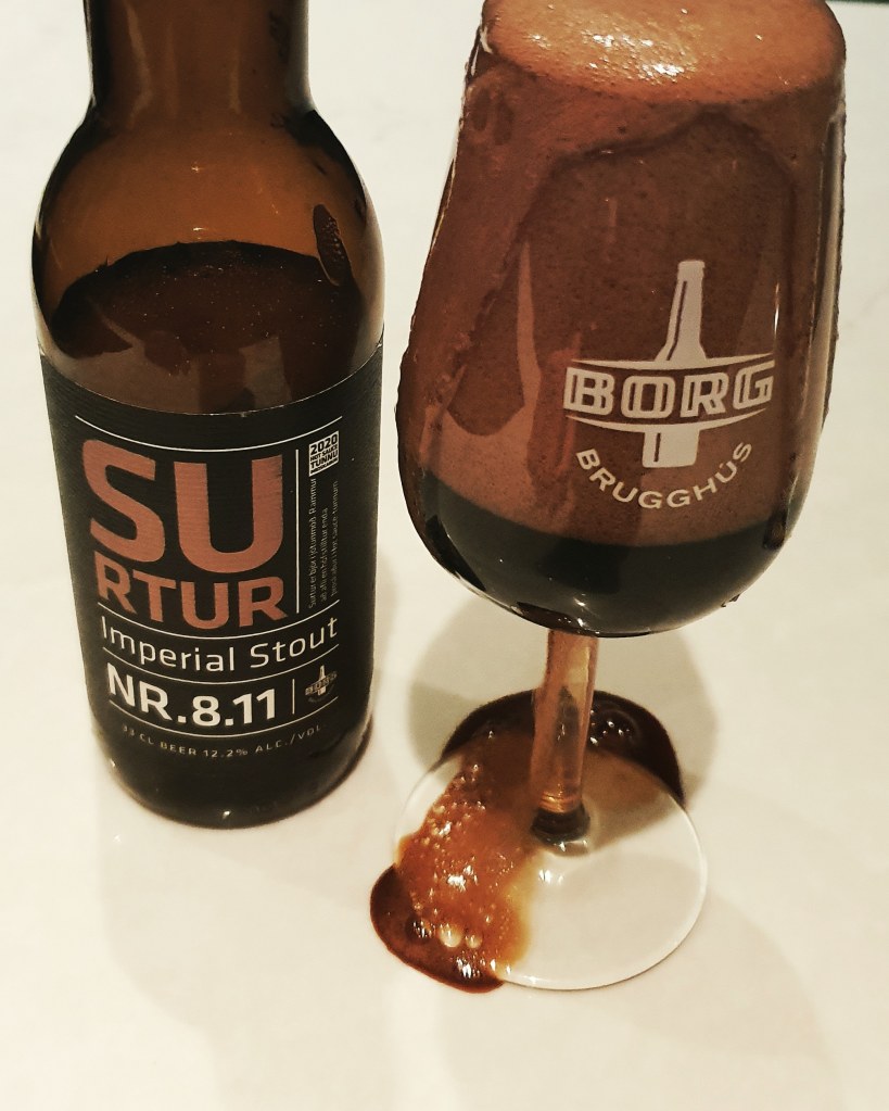 • Surtur (x%) ég get í raun ekki klárað þessa yfirferð nema nefna Surt bjórana frá Borg á nafn. Þeir eru alls ekki allir bakkelsisbjór en oft er inn á milli að finna bjór með einhverju gúmmilaði. Surtur 61 í fyrra var t.d. með  Gunnars kleinuhringjum og hlynsýrópi  í ríkulegu magni og svo látinn eldast á bourbon tunnum og rúg whiskey tunnum  í einhverja mánuði.