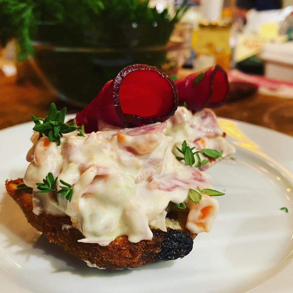Þessi réttur er magnaður. Hér notar Ragnar ost með síld sem hljómar reyndar ekki vel en er svakalega gott. Osturinn þarf að vera góður, Ragnar var með hinn sænska Västerbottenost sem er ofsalega flottur ostur.