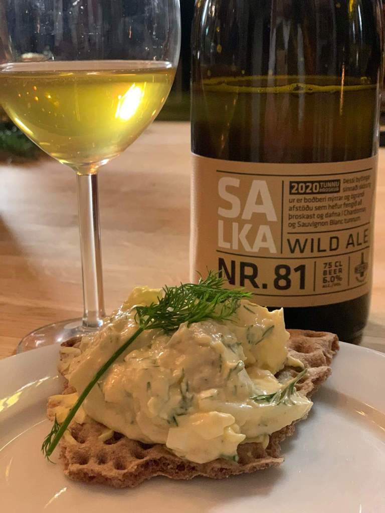 Þetta er ofsalega gott, osturinn kemur lúmskt í gegn en maður finnur hann ekki nema vita af honum. Hér notuðum við Sölkunr 81 frá Borg sem er nýjasti villibjórinn þeirra og er þroskaður á Chardonnay og Sauvignon Blanc tunnum. Bjórinn er svakalegur, beittur, kolsýrður með þægilegum belgískum kryddum og svo þessum funky villikeim. Tengingin hér við réttin var alveg fullkomin, hér tvinnaðist réttur og bjór saman í fullkomna heild. Magnað. Askasleikir red ale kom líka frábærlega út með þessum rétti en fer með hann í allt aðra átt. Hér koma lúmskir malttónar vel fram og það er eins osturinn verði meira áberandi hér en með hinn bjórinn.