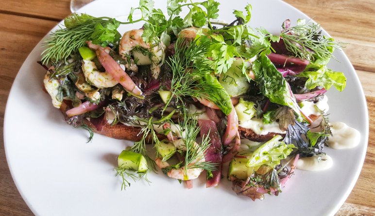 Rækjubrauðið er svakalegt á Hipstur, brakandi pilsner með eins og Brio er frábært combo