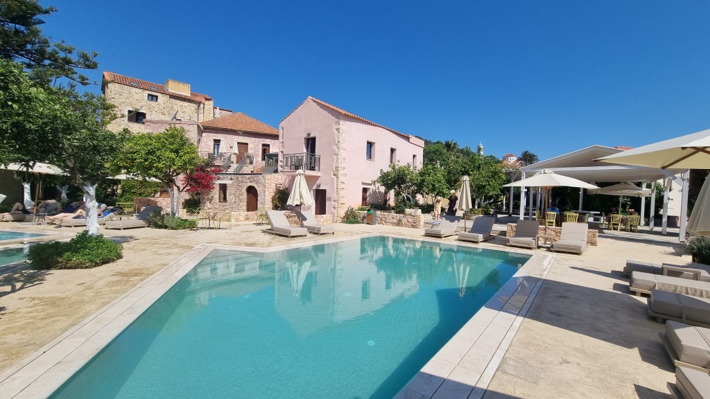 Við gistum ekki í Chania heldur í pínu litlu þorpi sem heitir Spilia og er um 30 km vestan við Chania. Þetta þorp er krúttlegt, rólegt klassískt grískt þorp og nánanast engir ferðamenn nema á eina hótelinu í þorpinu, Spilia Village sem ég mæli svo sannarlega með. Við vorum í húsi tengt hótelinu með sundlaug útaf fyrir okkur. Það voru engir gestir í nálægum húsum og því afar rólegt og þægilegt hjá okkur. En okkur var þó tjáð að það væri mun meira líf í júlí og ágúst hér, allt uppbókað. Starfsfólkið hér allt mjög vinalegt og þægilegt og vill allt fyrir mann gera.