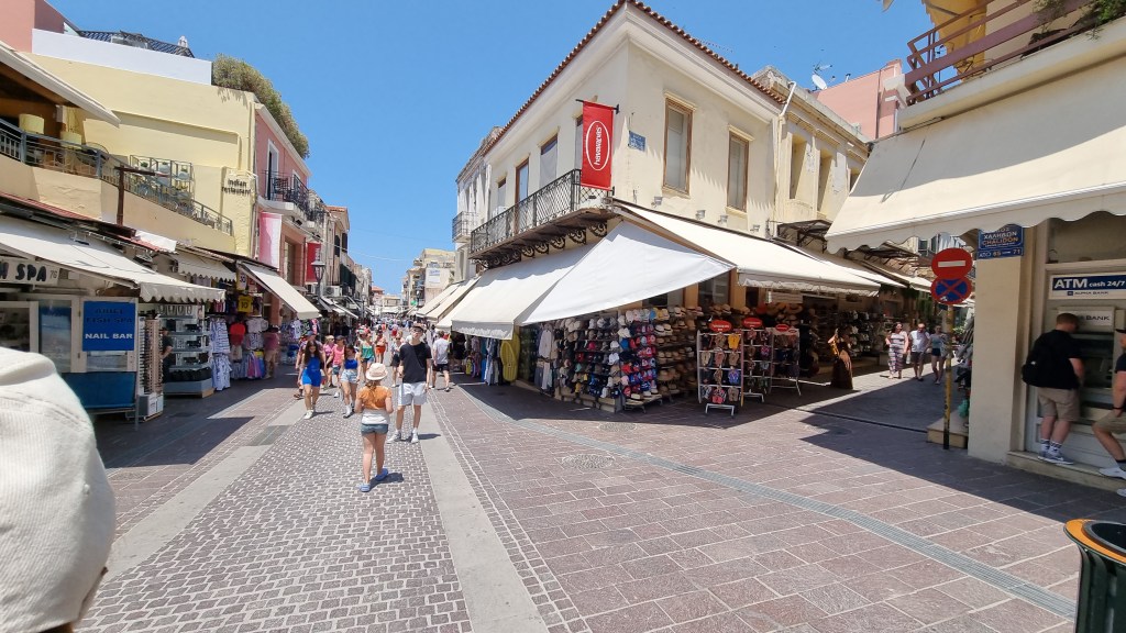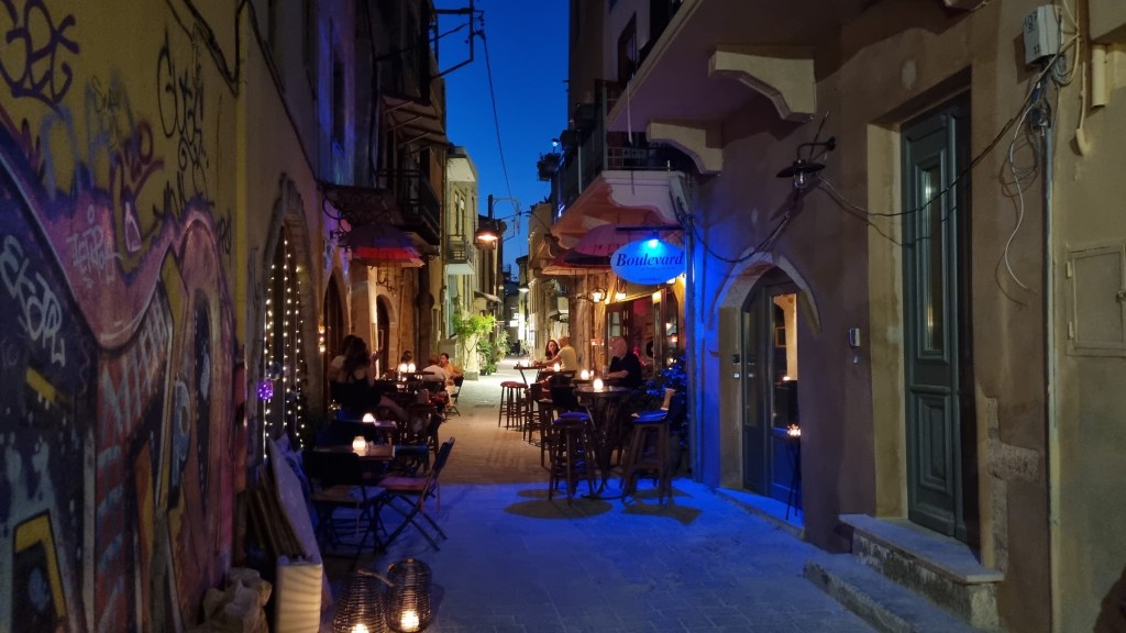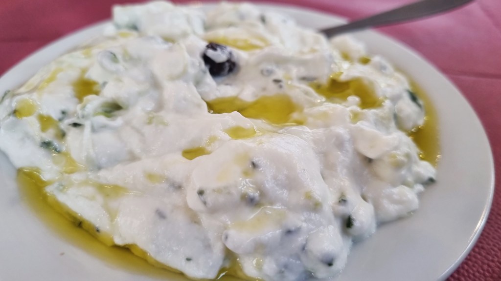 Hér erum við komin inn á það sem er best við Krít að okkar mati, maturinn, já ok strendurnar eru líka svakalegar reyndar, sjá neðar. Við vorum með miklar áætlanir um að elda mikið sjálf enda með heilt hús undir okkur en sú hugmynd er eiginlega ekki góð. Til að byrja með eru mjög takmörkuð eldhúsáhöld í eldhúsinu, þú ert aldrei að vinna með þín áhöld alla vega, verðlag í matvöruverslununum var mjög hátt, svipað og heima bara og svo vill maður auðvitað rannsaka gríska matargerð og vill bara fá þetta óaðfinnanlegt frá heimamönnum. Við elduðum samt nokkrum sinnum, þá helst tzatziki og grískt salat sem var mjög gott samt. En ég mæli með því að gera sem minnst heima í eldhúsinu nema þú sért grískur kokkur auðvitað. Ef þú ert svo virkilega að spara aurinn þá ferðu í strætisfæði á borð við Gyros. Í næsta þorpi við okkur er frábær grillstaður, Kaneva (https://maps.app.goo.gl/Uq4b9FtjRiX8ErM26?g_st=ic) https://maps.app.goo.gl/Uq4b9FtjRiX8ErM26?g_st=ic þar sem maður fær gyros vefjur á 500 kr stykkið og er þetta alveg heil máltíð takk fyrir.