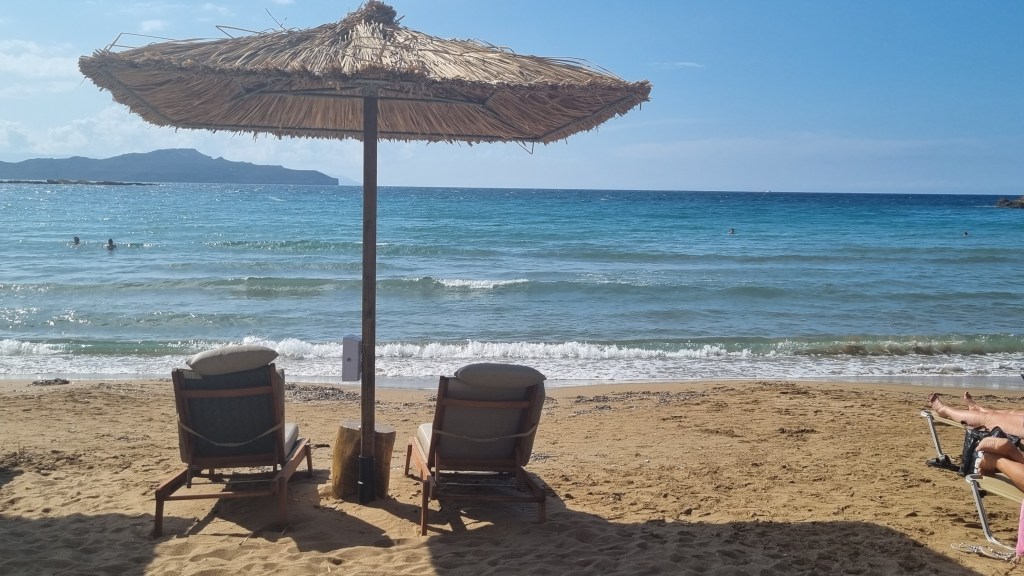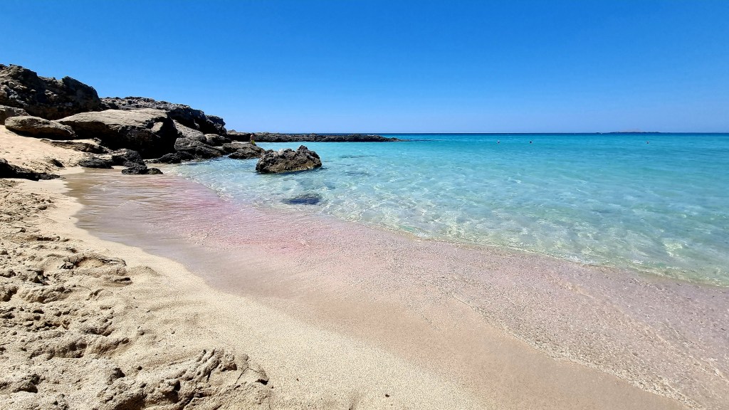 Elfonissi er svo enn ein bleika ströndinn og líklega er talað meira um hana en Balos. Alla vega er þetta sú strönd sem þú verður að koma á ef þú googlar Krit. Við ákváðum að sleppa henni, bæði vegna þess að hún er í um klukkutíma og 20 mínútu akstur frá Spilia en líka af því að þar er gríðarlegur ferðamannastraumur og við bara nenntum ekki að standa í því. Við fórum hins vegar á Falasarna sem var bara í um 30-40 mínútna akstur frá okkur. Líka bleik strönd eins og Balos en mun “rólegri”. Ekki eins mögnuð og Balos en engu að síður með þeim fallegri og meira af þessu bleika. Túrkisblár sjórinn og svo löng ströndin, með hvítum sandi en líka sumstaðar klettum sem ná í sjó fram og mynda litlar víkur og mínístendur sem vert er að elta uppi ef maður vill litla paradís alveg fyrir sig. Það eru bleikir blettir víða og mér fannst bleiki sandurinn meira áberandi en á Balos. Það er svo hægt að leigja sér bekki eða jafnvel eins konar sólskýli með púðum og kósíheit. Mat og drykki er svo hægt að panta frá veitingahúsum sem liggja á stangli meðfram ströndinni. Okkar upplifun hér var frábær og mælum við eindregið með að eyða góðum degi hér líka. Aðkoma einföld á bíl, nóg af bílastæðum, veit ekkert hvernig þú kemst hingað án bíls samt.