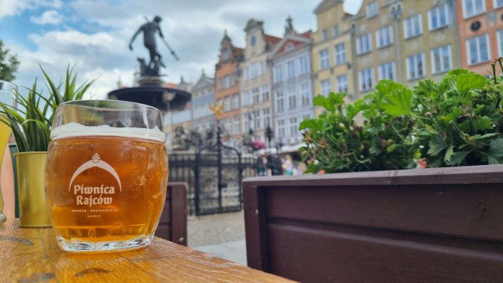 Ég get svo ekki fjallað um veitingastaði hér án þess að nefna Piwnica Rajcó sem er brugghús eða bruggbar staðsettur beint fyrir aftan Neptúnus styttuna sem er eitt helsta tákn Gdansk. Piwnica er bruggbar sem þýðir að þeir brugga allan bjórinn sinn á staðnum og þeir eru líka með mat. Ég smakkaði allan bjórinn frá þeim, 6 tegundir í 4 heimsóknum, allt virkilega vandað og gott. Það er frábært að sitja úti við stóra torgið og sötra bjórinn og leggjast í mannlífsrannsóknir, bara vera og slaka!