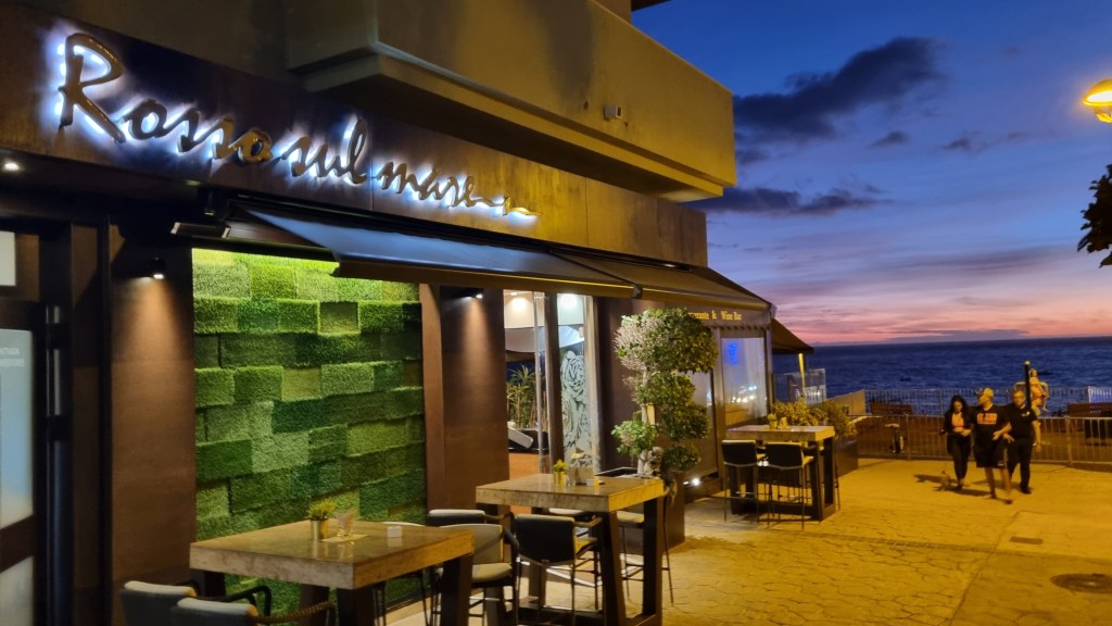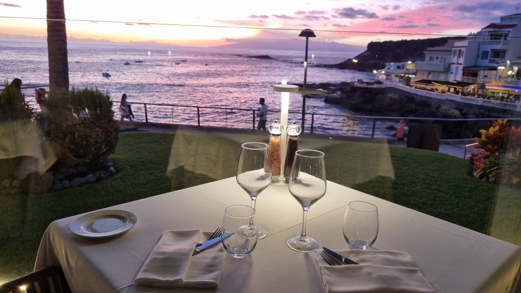 Fyrsta kvöldið okkar á Tene þá hittum við góða vini sem bókuðu þetta borð fyrir okkur. Þau höfðu borðað hér nokkrum sinnum og fannst “óhætt” að hitta okkur hér eins og þau orðuðu það. Þetta var home run, mjög glæsilegur sjávarréttastaður sem stendur hér við litla vík í La Caleta sem er lítið eins konar þorp eða hverfi við ströndina. Þetta er eins og eitthvað allt annað en Tenerife, minnir mig helst á lítið sjávarþorp á Krít. Útsýnið frá veitingastaðnum var algerlega geggjað, sérstaklega ef maður passar að vera á staðnum við sólsetur. Maturinn var líka frábær og þjónusta góð. Sumt sjávarfangið var meira að segja lifandi og beið þess að vera valið til átu. Ég fékk mér skötuselinn sem var mjög góður en látlaus og smakkaði svo sandhverfuna hjá nafna mínum Ragnari Frey (Læknirinn í Eldhúsinu), virkilega gott. Humar linguine rétturinn var hins vegar alveg geggjaður, mögulega það besta þetta kvöldið. Já ef maður er fyrir sjávarfang þá er þetta staðurinn.