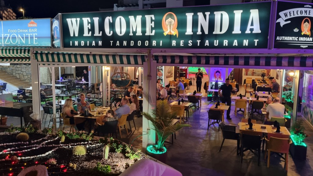 15.8.2024 – UPPFÆRT. Mig langar til uppfæra smá þennan annars ágæta pistil minn. Svona af því að ég er nú hér aftur á Tene. Til að byrja með þá stend ég áfram fast við mitt, eða það held alla vega, varðandi meðmæli mín til þessa, flest allt þ.e.a.s. Ég er svo sem búinn að fara oft á Welcome Indía og The Ginger Pig, báðir þessir staðir eru enn á sama stað í hjarta mínu og áður (sjá að neðan). Svo er gaman að segja frá því að Winebar no55 er að ganga vel, en þau opnuðu hann bara hér í Október 2023, þannig að hann hefur ekki einu sinni verið til í ár (sjá nánar neðar) . Við spjölluðum við Roxanne núna og hún var ofsalega ánægð með gang mála. Þakkaði okkur fyrir að hafa dreift boðskapnum en það hafa greinilega margir lesið pistilinn minn og kíkt við á Winbar 55 ef marka má ánægjuvog Roxanne. Takk fyrir það kæru vinir. Þau hjón hafa svo verið að uppfæra standardinn á staðnum, nú er hægt að fá ýmislegt gúmmulaði að borða líka, nautakjöt og alls konar. Endilega prófið heimagerða tiramisu-ið þeirra, mjög ljúffengt.