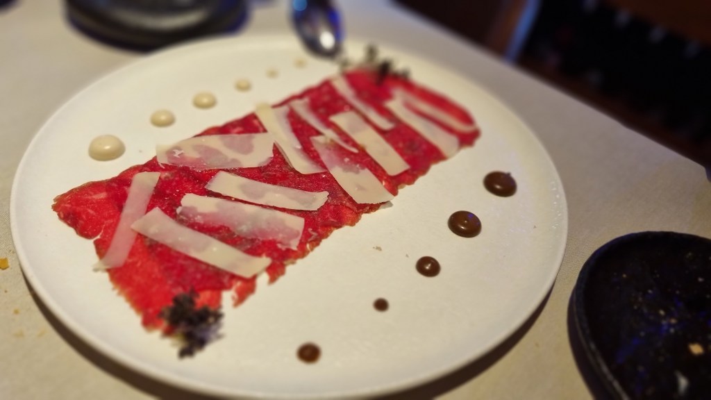 Við smökkuðum nokkra rétti, allt frábært. Tuna tartar með lárperumauki sem var ljómandi gott þó svo að dóttir okkar tilkynnti okkur að okkar heimalagaða tuna tartar væri enn betra. Svo var það nauta carpaccio sem klikkar bara ekki, einn í hópnum fékk sér gráðosta gnocchi sem var með því betra sem maður hefur smakkað í þeim geira, svo ríkulegt bragð af ostinum og gnocchi koddarnir svo lungna mjúkir og dásamlegir. Svo var það white duck ragu með pappardelle pasta, þvílíkt ljúfmeti, ég hafði ekki smakkað þennan frábæra rétt áður. Loks fékk ég mér nauta filet með foi gras og púrtvíns demiglace. Ég er ekki að ýkja þegar ég segi, besta nautasteik sem ég hef fengið sem ég man eftir. Vá!!!