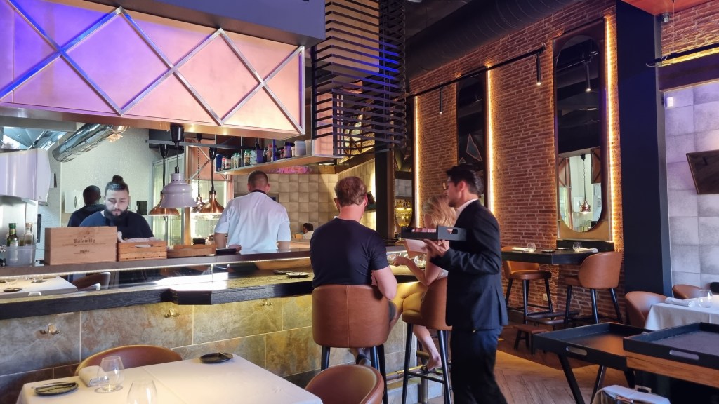 Þetta er lítill staður, opið eldhús sem mér finnst alltaf jákvætt, ekkert að fela. Lyktin dásamleg, grillað kjöt og alls konar. Í glerskáp við eldhúsið má sjá svakalega flottar hangandi steikur, fitusprengdar og safaríkar. Ég veit reyndar ekki hvort þetta sé bara mont eða hvort maður geti valið steikina sína þarna? Þjónustan óaðfinnanleg, á Michelin leveli finnst mér. Maturinn passaði líka við allt þetta. Ég sá á matseðlinum minn uppáhalds rétt, ef hægt er að segja það en ég hef bara smakkað einu sinni áður, kongakrabba (king crab). Ég lét það samt ekki eftir mér að þessu sinni því þetta er eitt af þessum allra dýrustu hráefnum, einnig er hægt að fá wagyu hamborgara og reyndar alls konar wagyu steikur ef maður vill klára yfirdráttinn fljótt og rugglega.