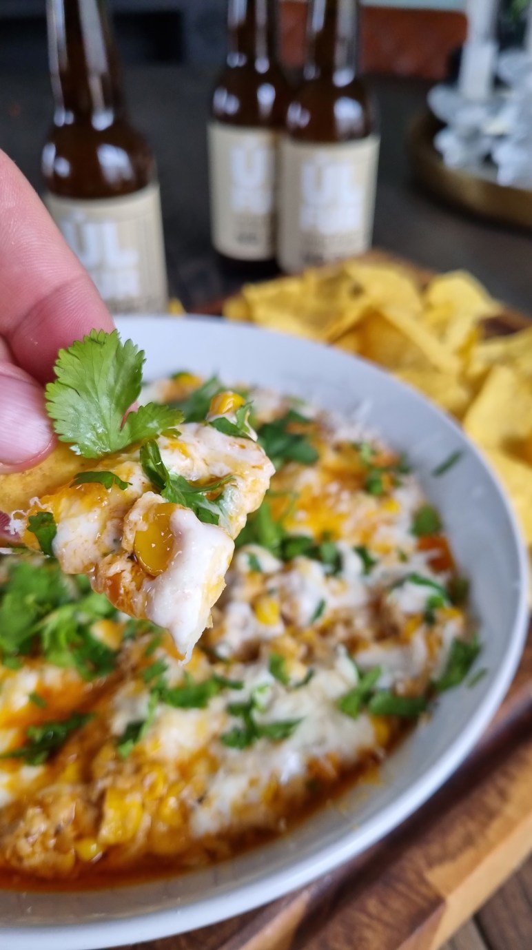 Það er alltaf gaman að huga að því hvað er best að drekka með matnum, hér erum við með bragðmikla og dálítið spicy ostaídýfu, hér gengur ískaldur brakandi pilsner eða amerískur lager fullkomlega með þessu. Auðvitað allir þessir mexíkönsku lagerbjórar líka en þeir eru heldur óspennandi. Amerískur west coast IPA væri mitt val samt en þetta er auðvitað smekks atriði.