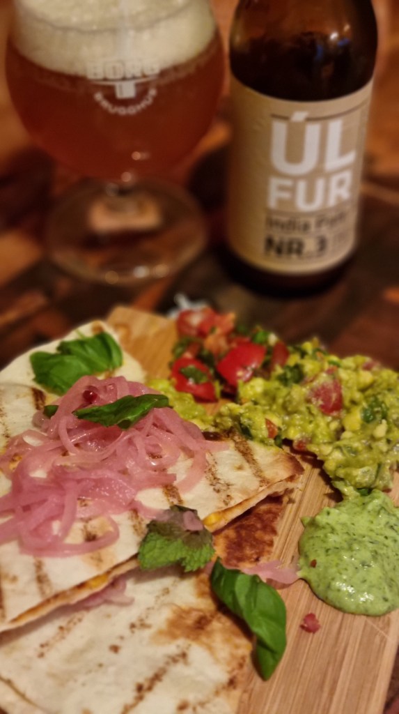 Ég má til með að benda á þessa pörun en ég held að sjaldan sé hægt að tala um eins flott match. Beiskur og brakandi IPA er öflugur en samt nógu hógvær til að lofa matnum að njóta sín en heldur samt vel velli gagnvart sterkum bragðflækjunum í þessu. West coast IPA og kóríander hefur alltaf einhvern veginn parast mjög vel saman í mínum bókum, þetta tvennt tvinnast saman og myndar alveg nýtt bragð. Það er vonlaust að lýsa þessum dansi með orðum. Prófið bara sjálf. Við mælum með Úlf IPA frá Borg.
